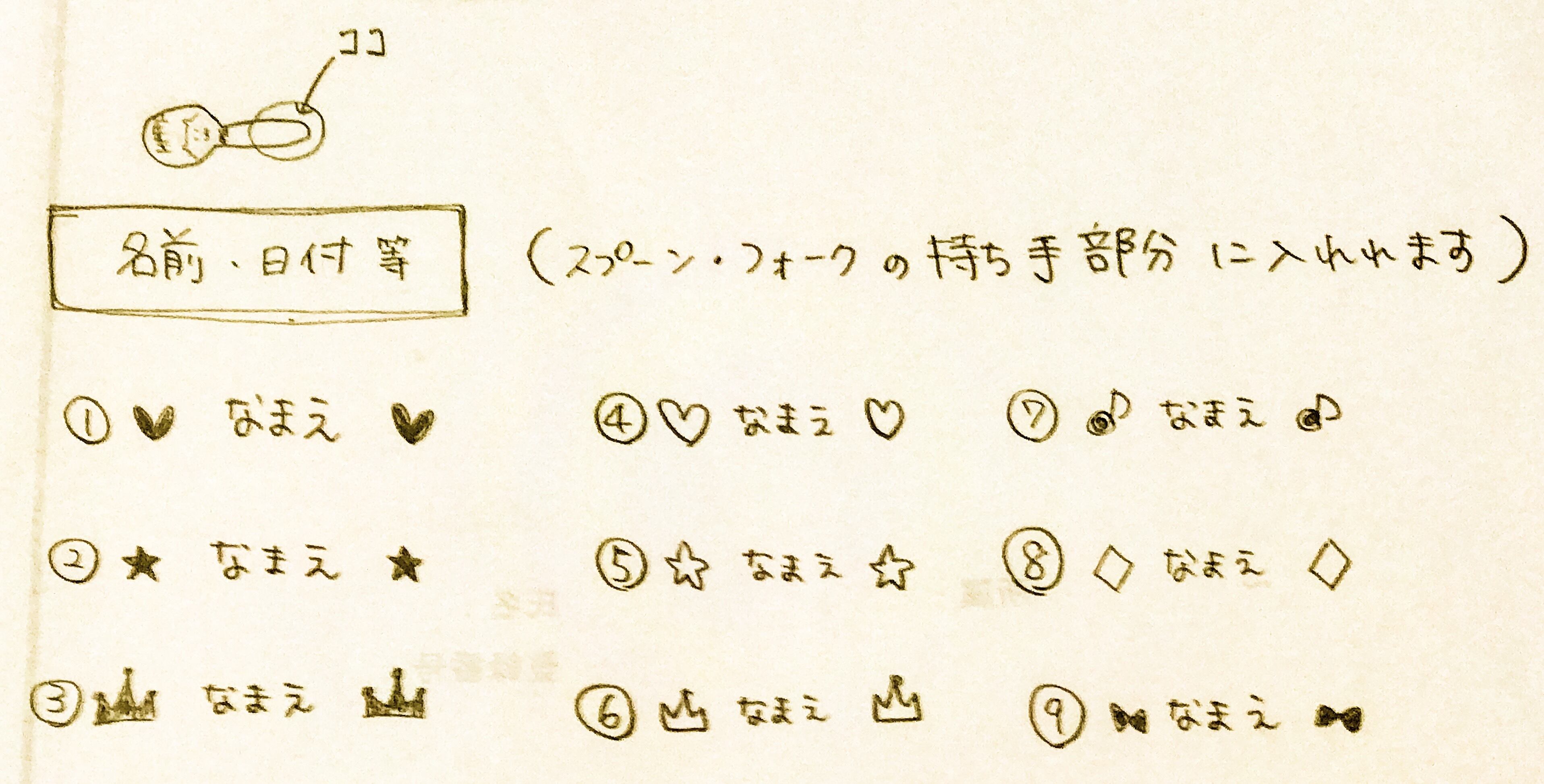 ①画像の用紙のイラスト内から、好きな絵柄を選んで頂いたけます。